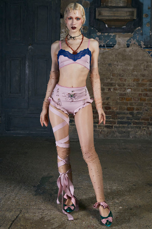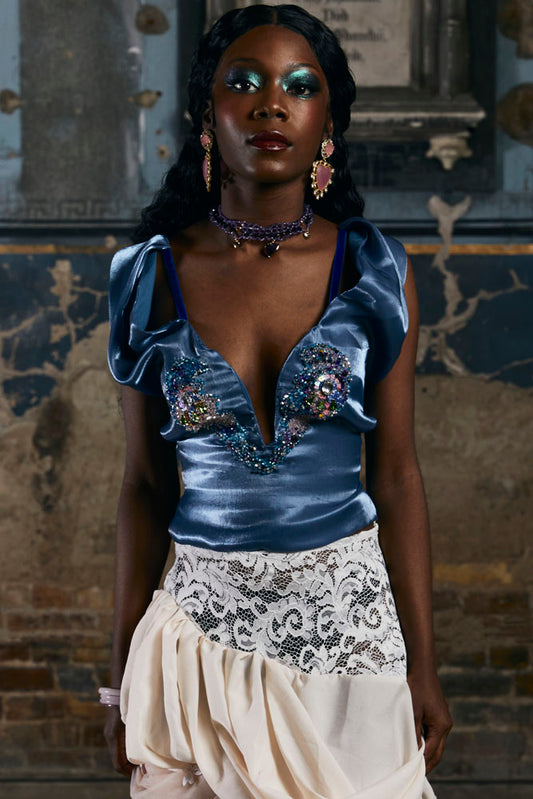 Luciolla Embroidered Corset Top in Water Blue - Made To Order
