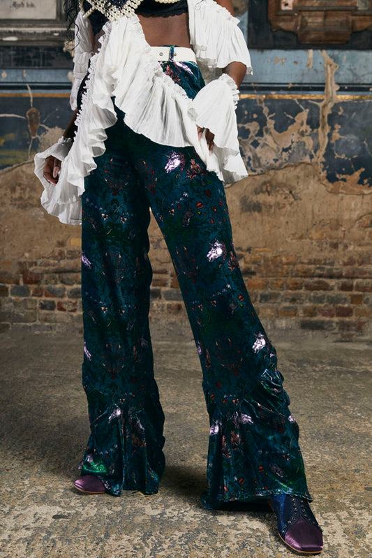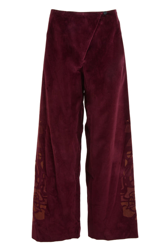 Pantalon Elodie en velours de soie à imprimé lapin mystique - réalisé sur commande