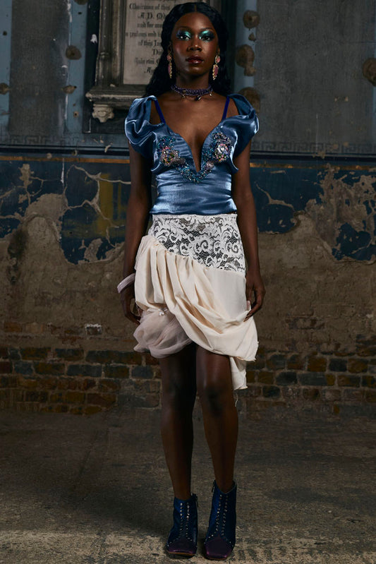 Jupe superposée Ingrid avec dentelle en blanc - réalisée sur commande
