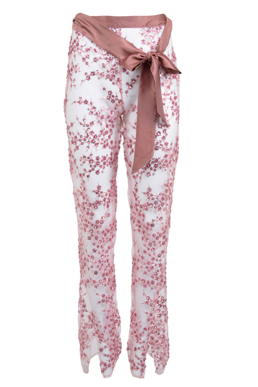 Pantalon Elodie en velours de soie à imprimé lapin mystique - réalisé sur commande