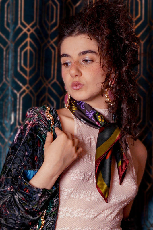 Mouchoir en Soie FLEURS DE MONTAGNE - Marron Foncé