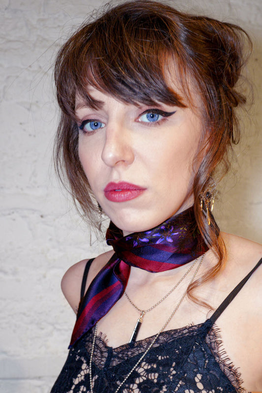 Mouchoir en Soie FLEURS DE MONTAGNE - Violet Foncé