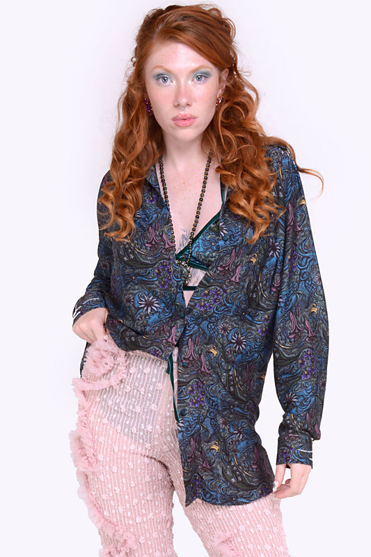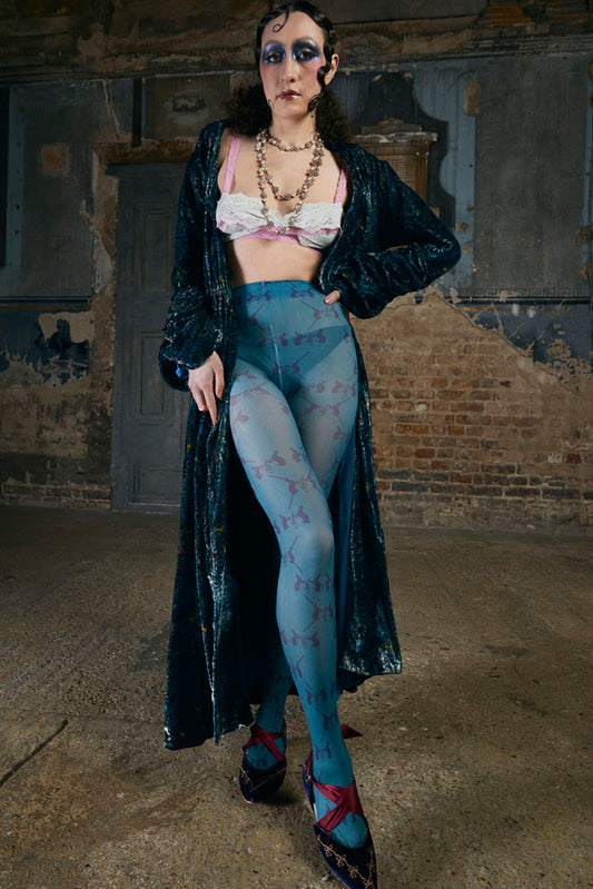 Top corset brodé Luciolla en bleu d’eau - réalisé sur commande