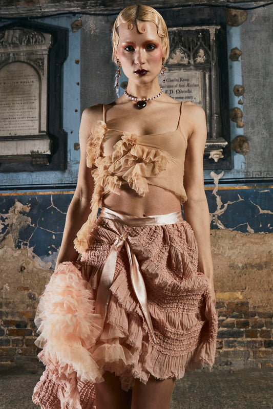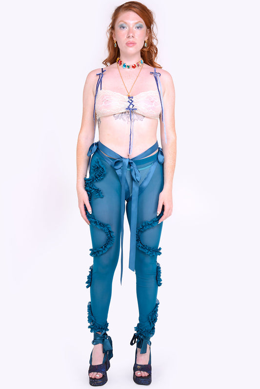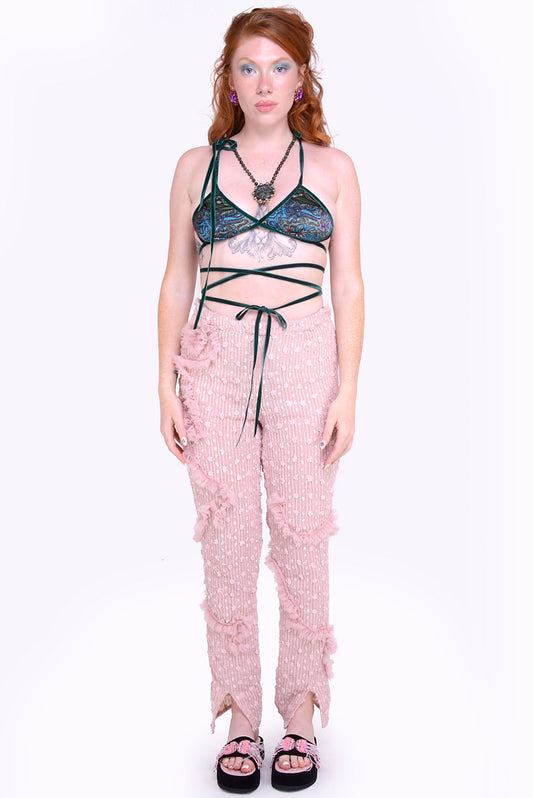 Eugenie Lace Bralette Top en bleu pâle/rose - réalisé sur commande