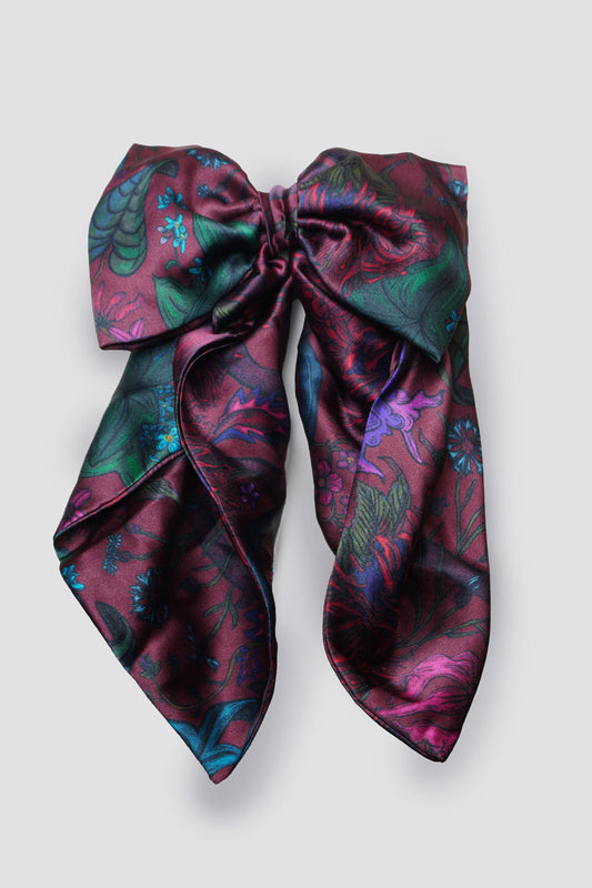 Fiocco in seta con fermaglio per capelli Eloise con stampa botanica - Su ordinazione